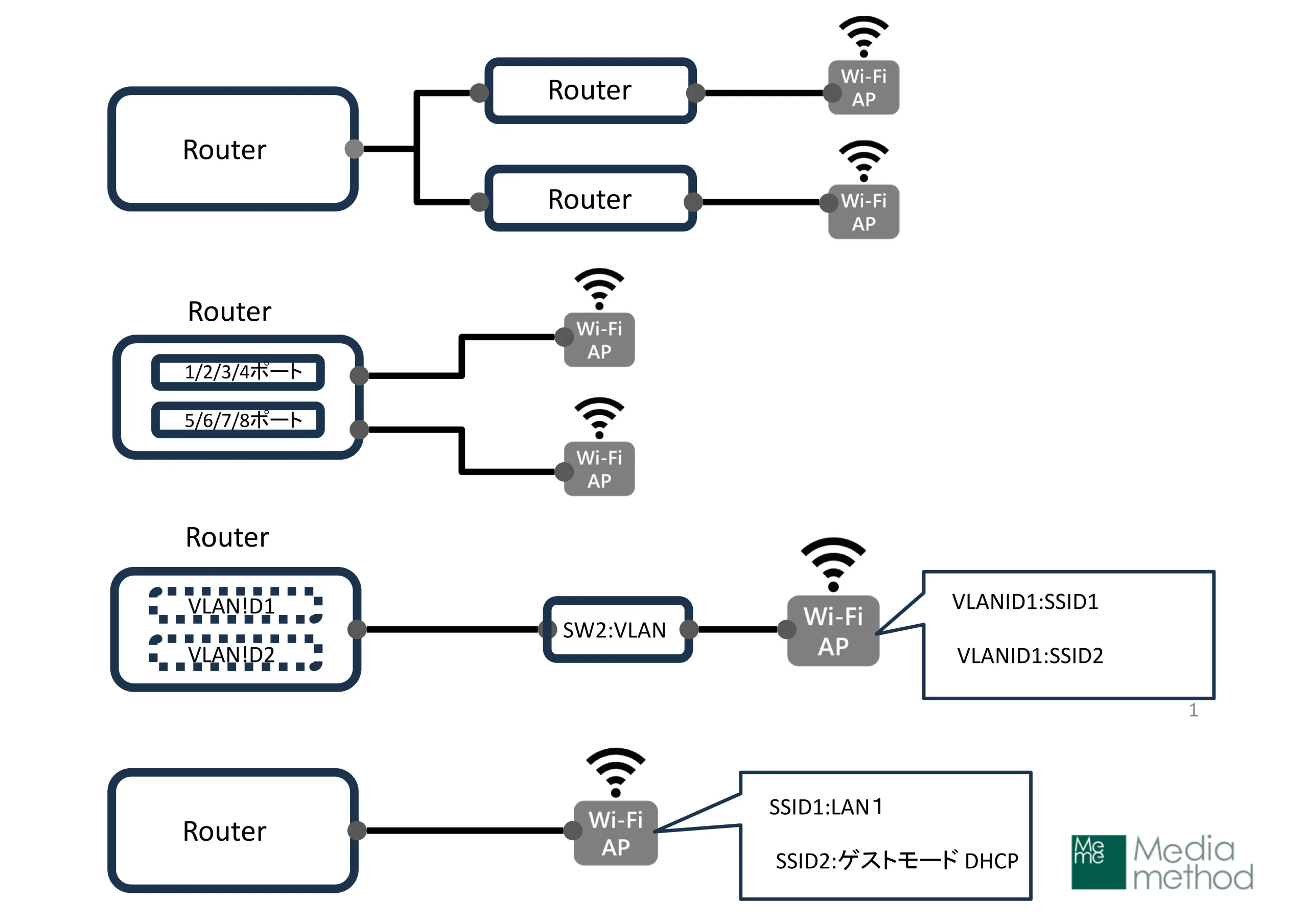 VLANで分離する / LAN分割で分離する / APゲストモードで分離する・・・ どれなのか?