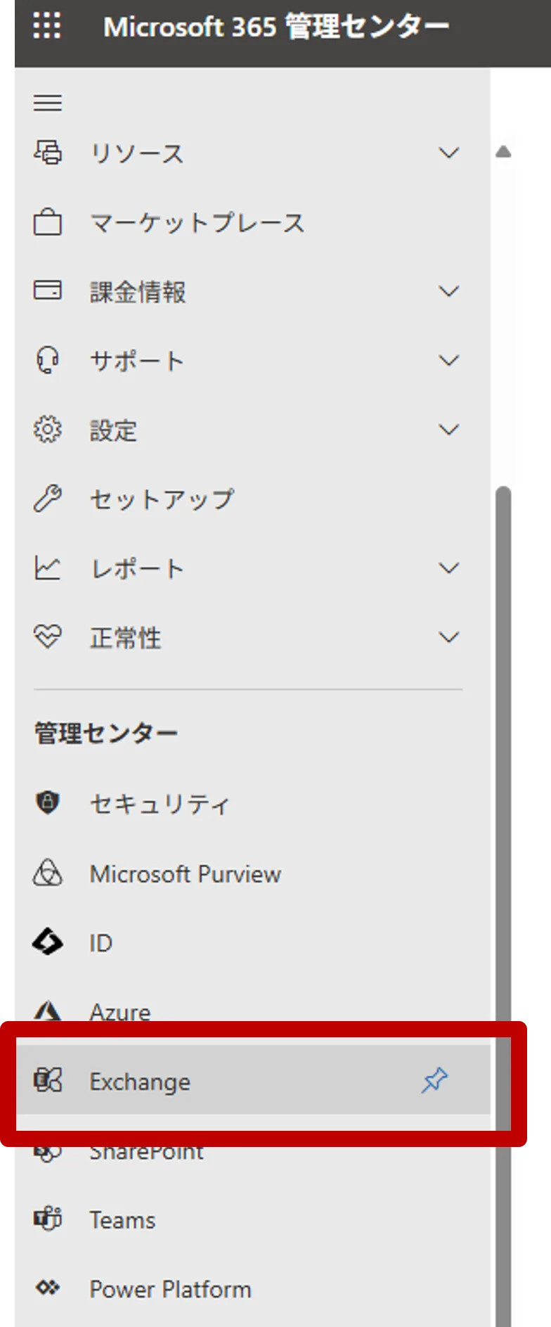 2.管理→すべて表示→Exchange
