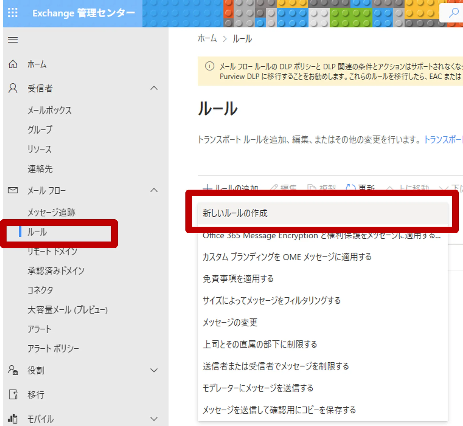 3.メールフロー→ルール→新しいルールの作成