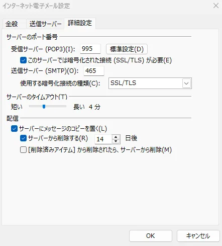 ② Outlook(Microsoft 365)のタイムアウト設定